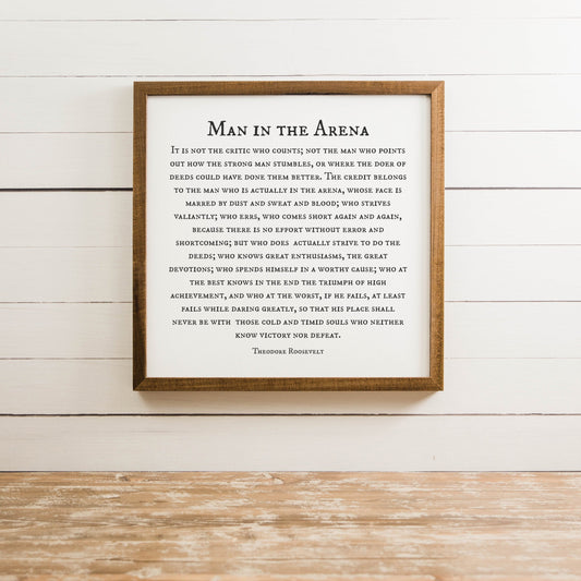 Wood Framed Signboard - Man in the Arena - Multiple Sizes [CLOSEOUT]