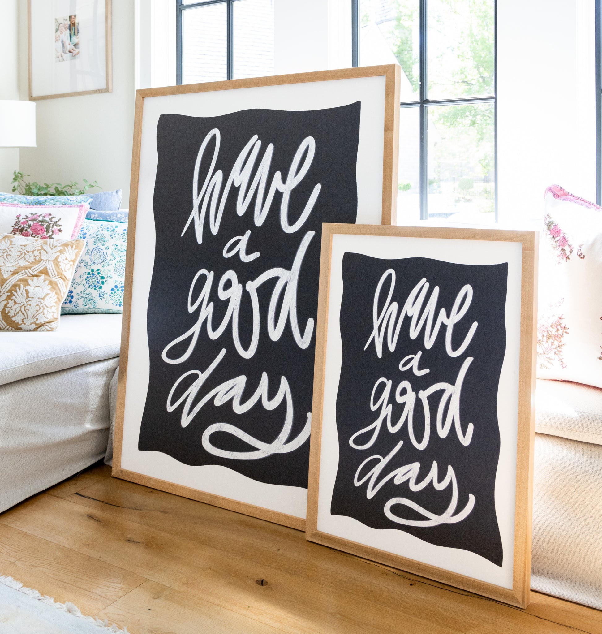 Make every day a masterpiece with our "Have a Good Day" sign! Whether you choose our over sized frame option or the 20 x 30, this versatile design is guaranteed to elevate any space. High-resolution prints on ultra-thick canvas embossed material. Handcrafted with natural wood making each frame its own masterpiece with unique color tones and variations. Framed in a beautiful almond frame, this piece comes ready to hang.