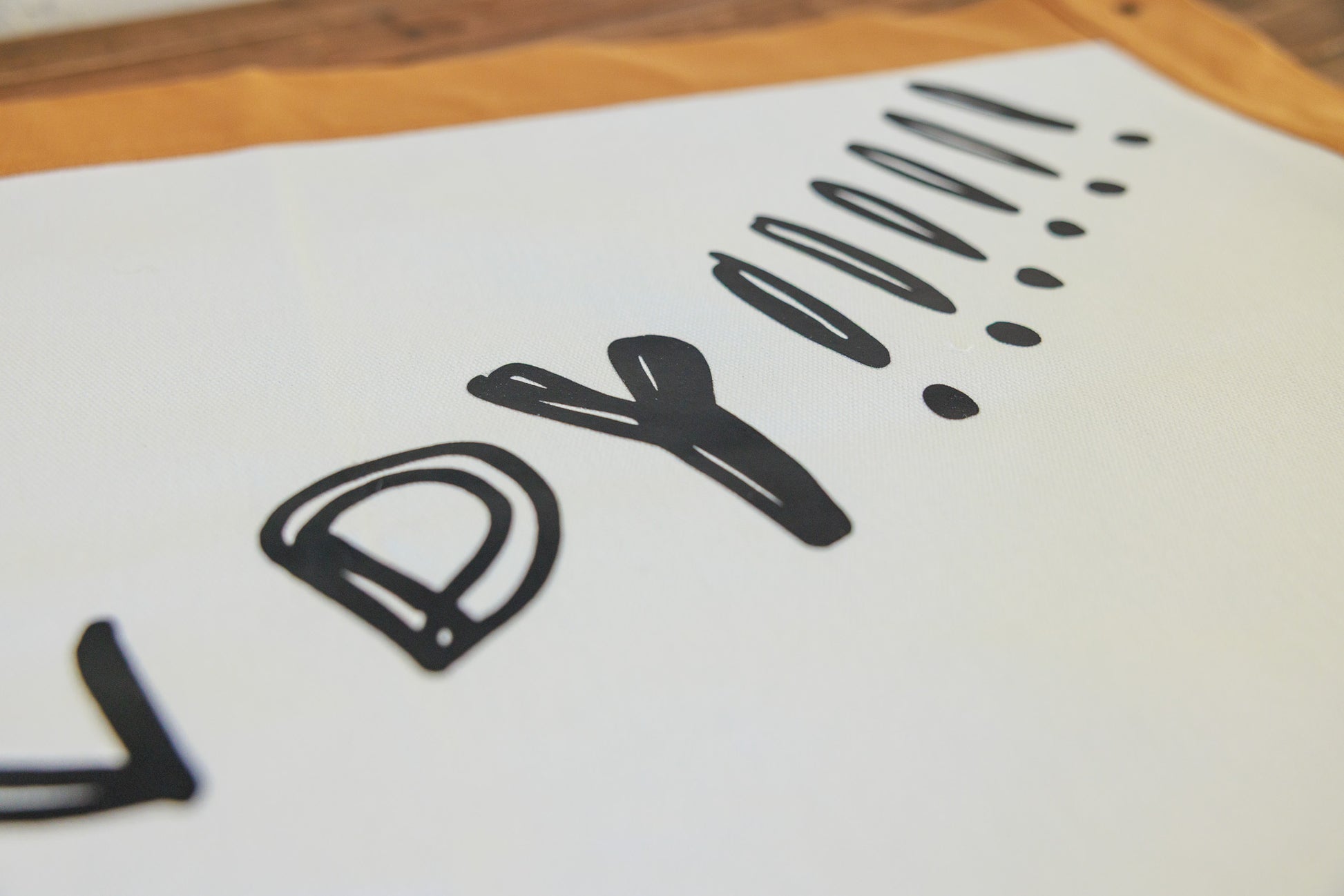 Color: Natural cotton base with bold black print and brown trim