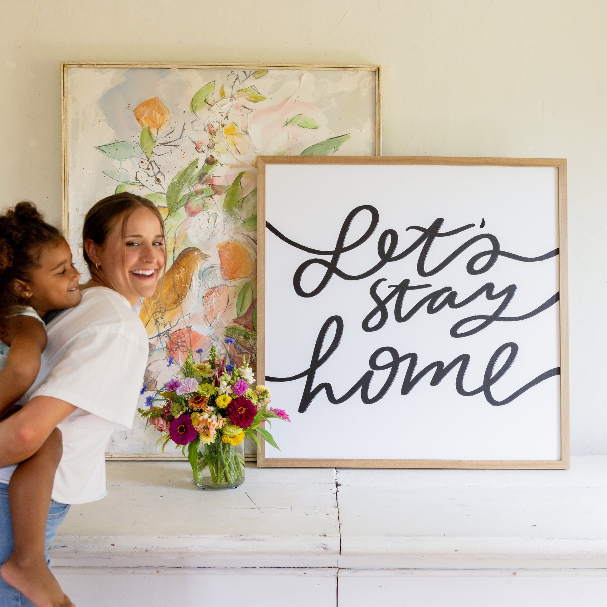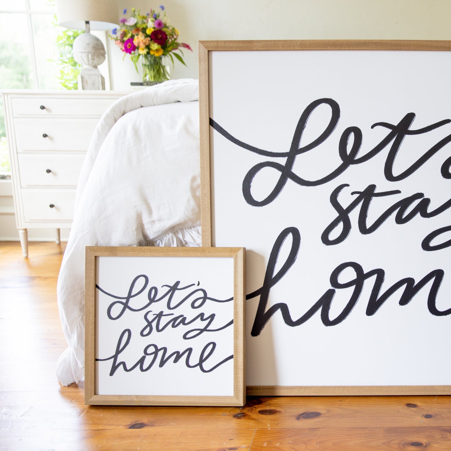 Let's Stay Home. A sweet reminder to slow down and enjoy time at home. Display it in your living room, bedroom, or entry way.
