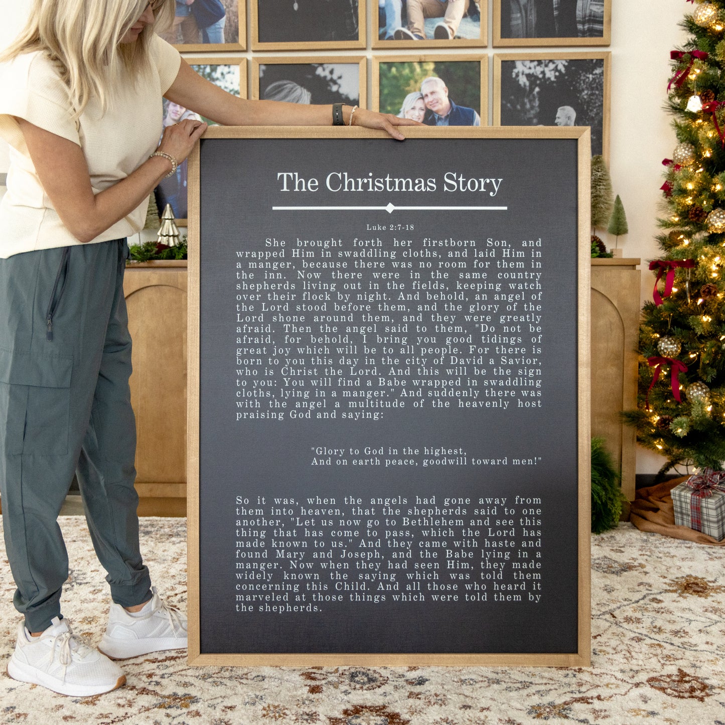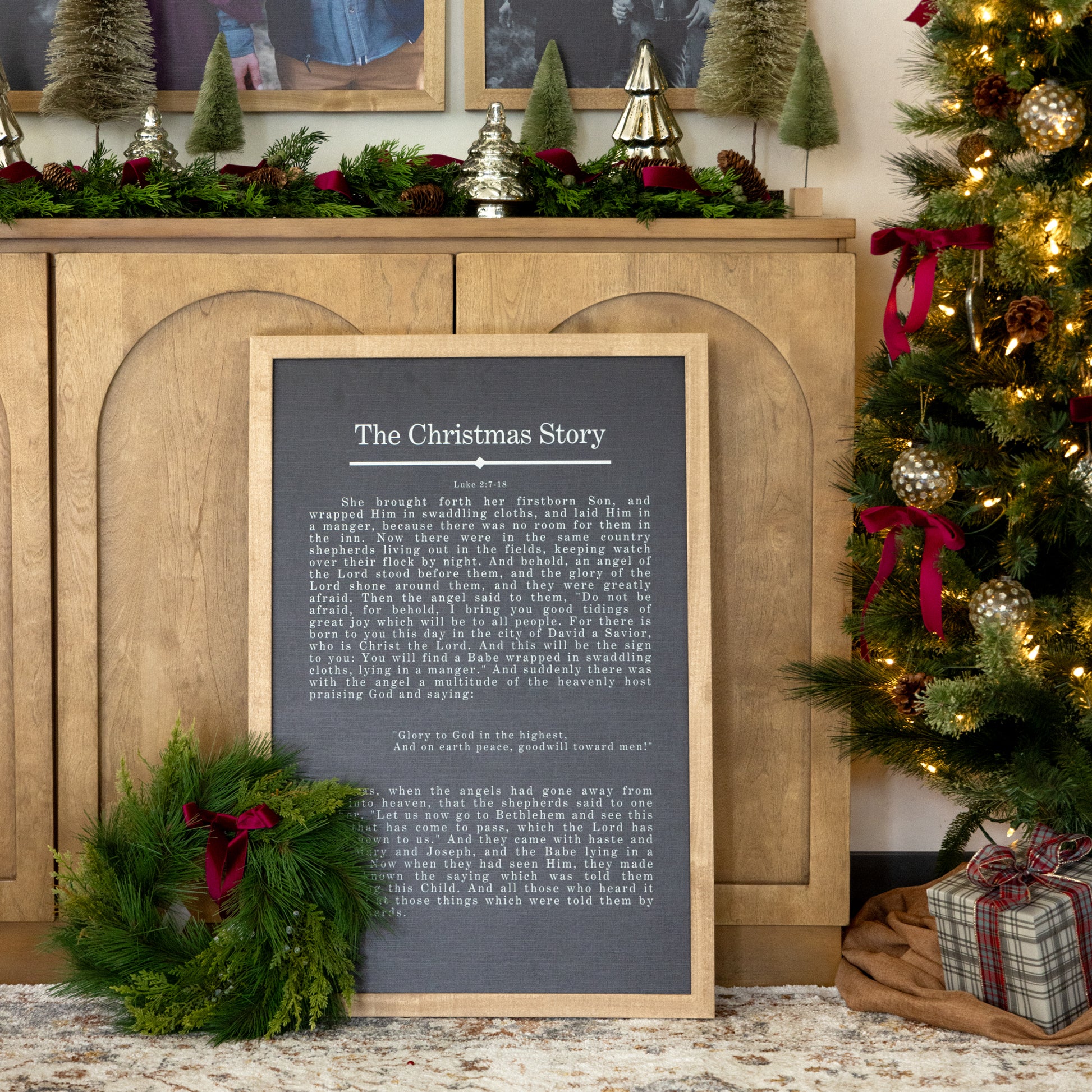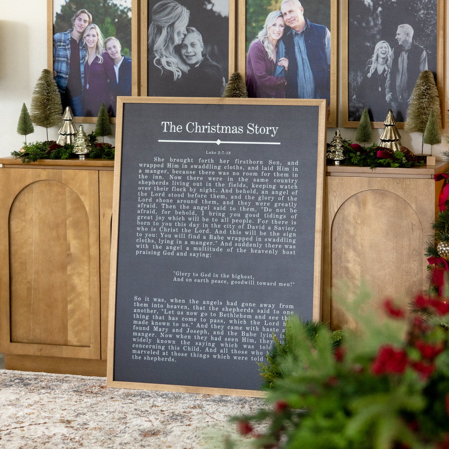 "The Christmas Story" Framed Wall Art (Available in 20" x 30" and 34" x 46") – Almond Wood Frame