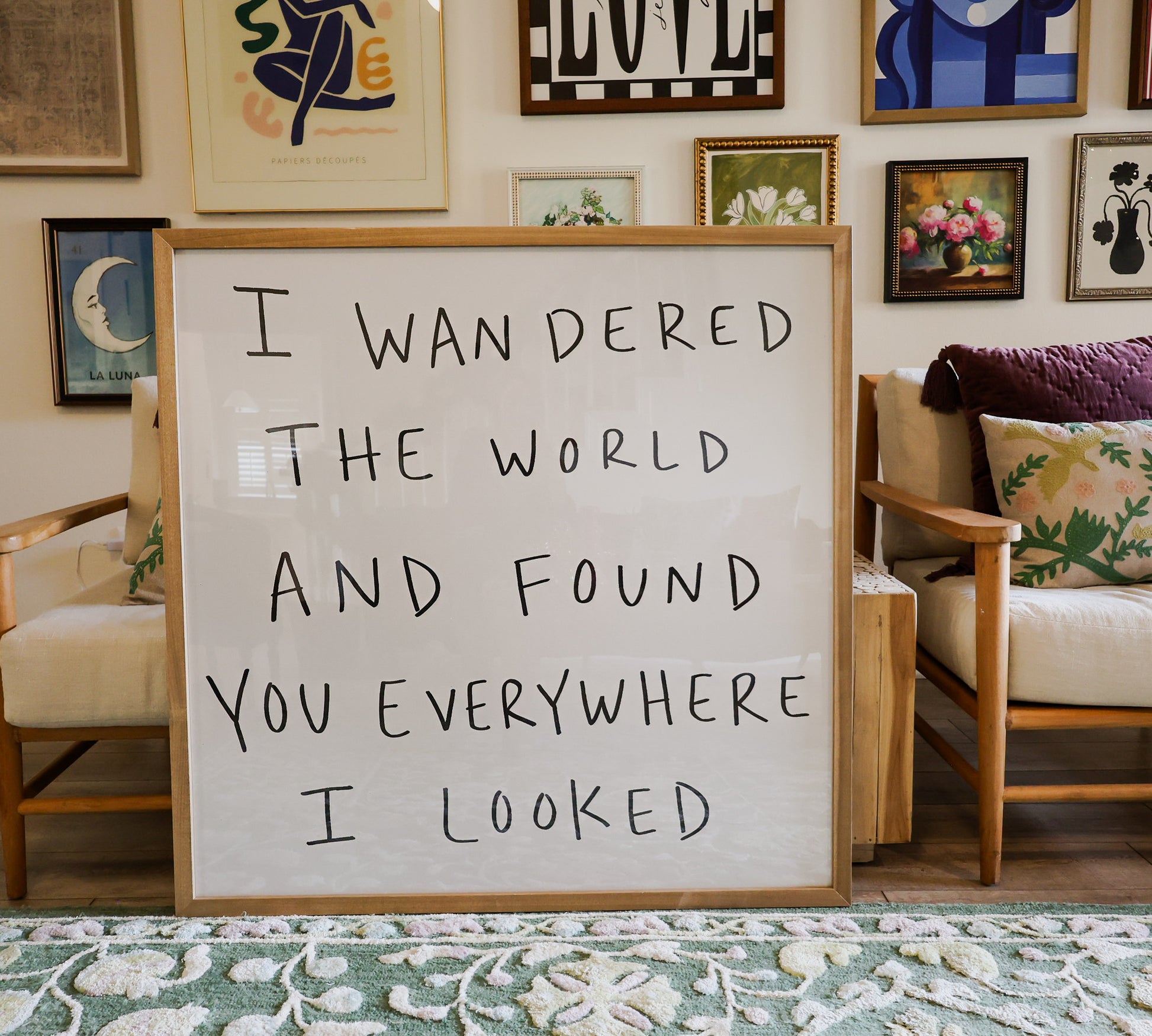 Wandered is a 38x38 framed piece with acrylic featuring the quote: